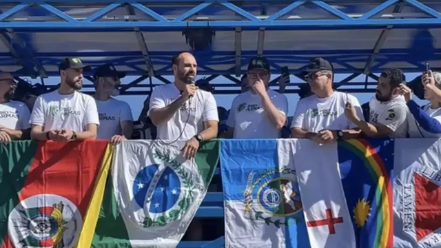 Durante um evento a favor do direito às armas que ocorreu neste domingo, dia 9, em Brasília, o deputado federal Eduardo Bolsonaro, filho do ex-presidente Jair Bolsonaro, fez uma analogia entre "professores doutrinadores" e traficantes de drogas. Em seu discurso dirigido aos participantes do evento, Bolsonaro criticou o Ministério da Justiça, fez comentários sobre a situação na Venezuela e estabeleceu uma comparação entre professores e traficantes de drogas.