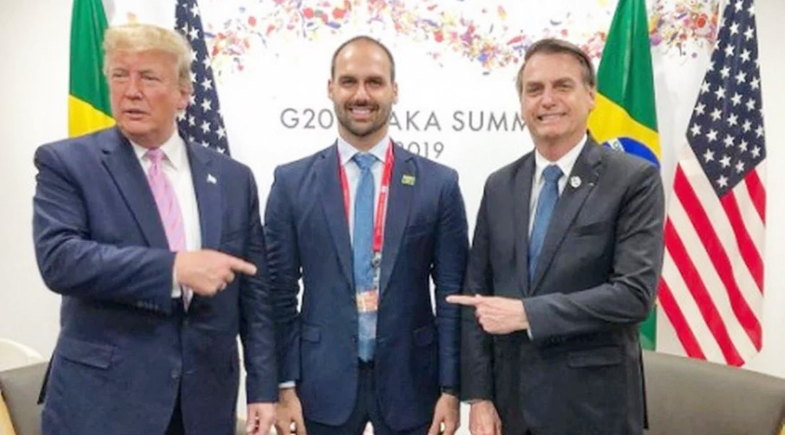 As falas de Eduardo Bolsonaro coincidem com um momento de forte tensão diplomática entre Brasil e EUA. A crise se agravou após Donald Trump, reeleito presidente, impor tarifa de 50% a produtos brasileiros, alegando perseguição judicial a Jair Bolsonaro.