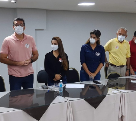 Participaram da coletiva os candidatos Capi (PSB), Dr. Furlan (Cidadania), Guaracy (PSL), Patrícia Ferraz (Podemos), Haroldo Iram (PTC), Professor Marcos (PT) e Lorena Quintas, vice de Paulo Lemos (PSOL), que está em isolamento domiciliar com Covid-19.