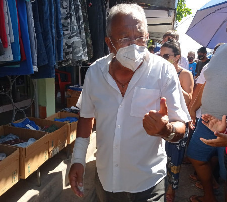 Na manhã de domingo, Doutor Pessoa fez campanha eleitoral no Mercado do Parque Piauí, na zona Sul de Teresina, mancando da perna e com o braço engessado, mas isso não atrapalhou em sua movimentação entre bancas e lojas pedindo votos.