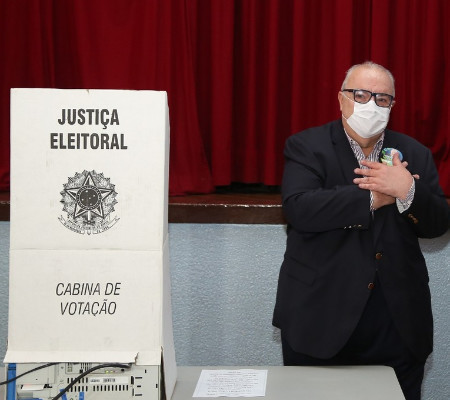 Rafael Greca, DEM, foi reeleito prefeito de Curitiba neste domingo (15). O resultado saiu às 19h45, com 95,12% das urnas apuradas. Greca tinha 59,77% dos votos válidos, totalizando 475.889.