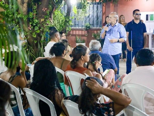 O candidato a governador do estado, Sílvio Mendes (União Brasil), a candidata a vice-governadora Iracema Portella e o candidato ao Senado, Joel Rodrigues (ambos Progressistas), se reuniram com um grupo de pessoas com deficiência visual e seus familiares no bairro São João, zona Leste de Teresina, na noite desta quinta-feira, 18.