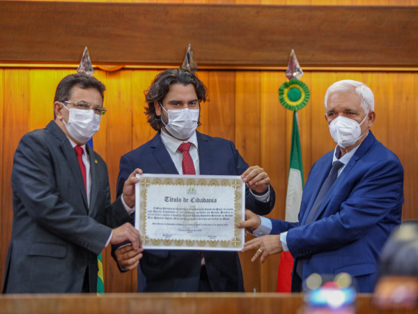 Os empresários do agronegócio no Piauí, Alzir Neto, presidente da Aprosoja, Paulo Dalto e o diretor executivo da Aprosoja, Rafael Maschio foram homenageados nesta terça-feira, 21, com o título de cidadania piauiense. A propositura da honraria foi dos deputados Zé Santana e Henrique Pires. No evento, a governadora Regina Sousa foi representada pelo secretário Jonas Moura.