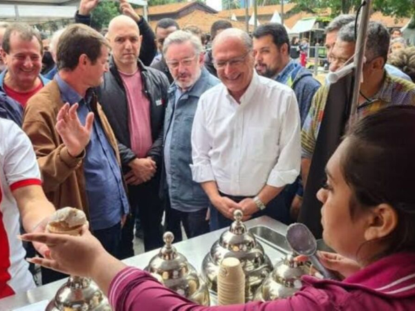 Geraldo Alckmin chegou por volta do meio-dia na feira. Bem-recebido pelo público, o vice-presidente tirou fotos com simpatizantes e andou no meio do público. Um dois apoiadores entoou um grito muito usado nas campanhas petistas do presidente Luiz Inácio Lula da Silva. “Alckmin, guerreiro do povo brasileiro.” O canto, contudo, não foi acompanhado pelos demais apoiadores, e o vice-presidente continuou a visita.