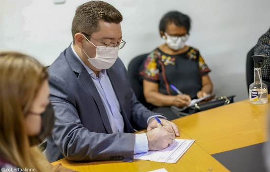 Os secretários Ellen Gera e Osmar Júnior estiveram reunidos com o SINTE