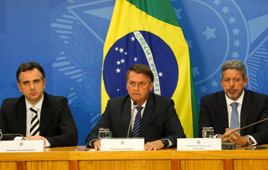 "Em havendo o entendimento por parte dos senhores senadores, em se aprovando o projeto de lei complementar, em se promulgando de forma bastante rápida uma emenda à Constituição, isso se faria valer imediatamente na ponta da linha essa diminuição da carga tributária para enfrentarmos esse problema fora do Brasil, que tem reflexos para todos nós aqui dentro", enfatizou Bolsonaro.
