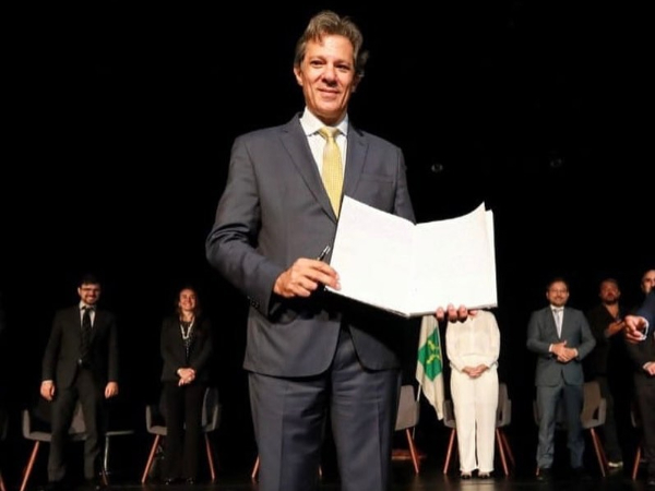 Haddad fez nesta segunda-feira seu primeiro discurso como ministro da Fazenda. Ele e os outros 36 ministros foram empossados pelo presidente Luiz Inácio Lula da Silva (PT) neste domingo (1º).