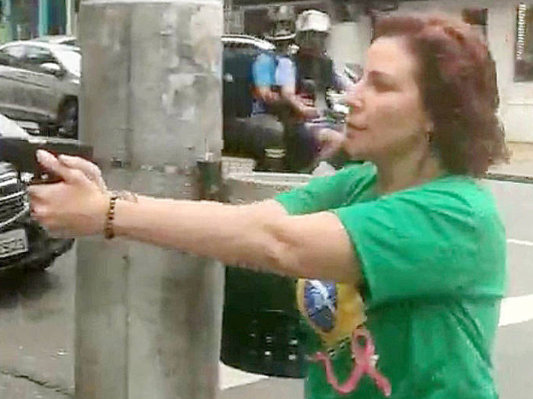 "Fui agredida agora há pouco. Me empurraram no chão, um homem negro... Usaram um negro para vir em cima de mim, eram vários. Eu estava almoçando com meu filho no bar, um homem começou a me xingar. Eu tenho porte federal de armas, [mostrei] até para ele parar", disse a deputada federal.