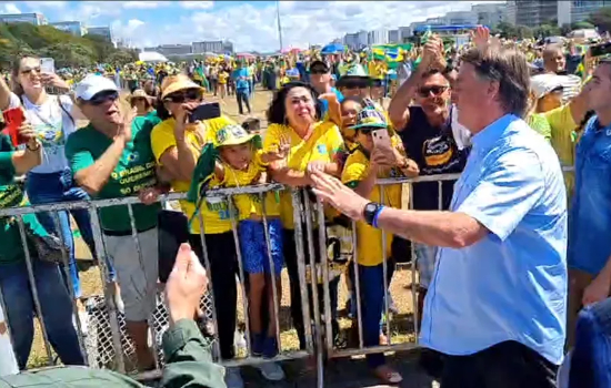 O presidente não fez discurso no ato em Brasília. A previsão é que participe, por vídeo, da manifestação prevista para esta tarde em São Paulo.