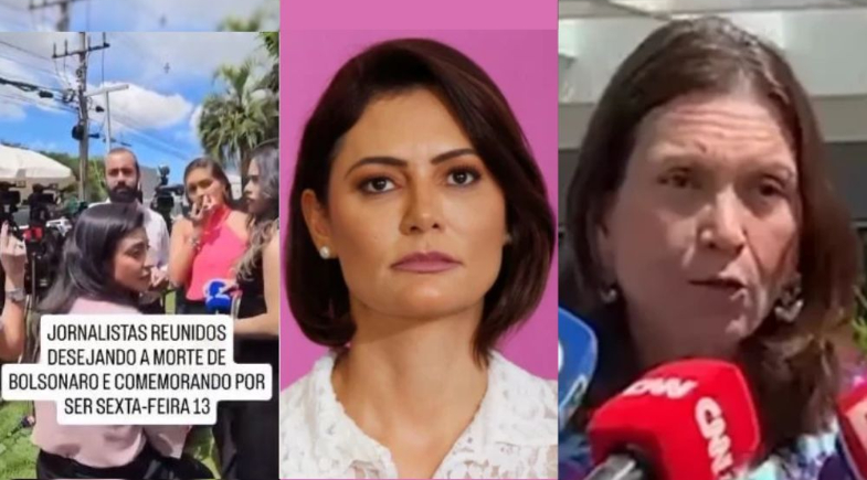 No último sábado (14), a ex-primeira-dama Michelle Bolsonaro (PL-DF) compartilhou em suas redes sociais um vídeo em que uma apoiadora do ex-presidente Jair Bolsonaro (PL) afirma que os jornalistas que estão fazendo a cobertura da internação de Bolsonaro, em frente ao hospital em que o parlamentar está internado, estão desejando a morte do ex-chefe do Executivo.