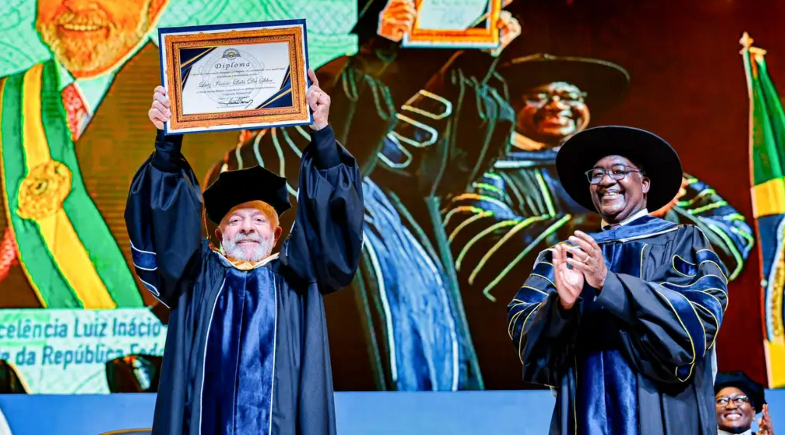O presidente Luiz Inácio Lula da Silva recebeu, nesta segunda-feira (24), o título de doutor honoris causa em ciência política, desenvolvimento e cooperação internacional concedido pela Universidade Pedagógica de Maputo. A cerimônia ocorreu na capital de Moçambique, durante visita oficial que marca os 50 anos das relações diplomáticas entre os dois países.