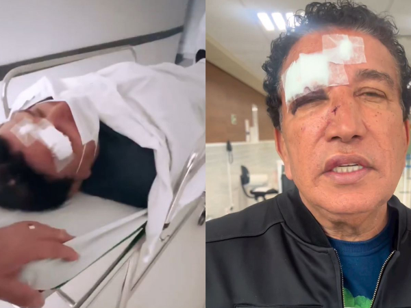 "Estou com esse monte de curativo aqui, nariz inchado, olho inchado. Andando no Nordeste para mudar os indecisos em favor do Brasil, sofri um acidente hoje pela manhã com um blindex no hotel onde estava hospedado. Fui bem atendido no hospital da Unimed em Vitória da Conquista", diz o senador eleito.