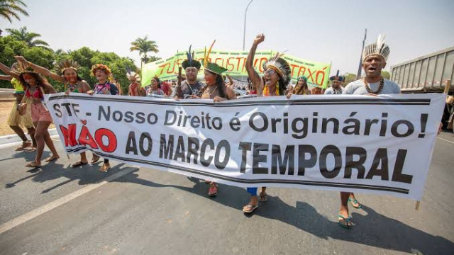 O marco temporal indígena se trata de uma tese jurídica que defende que as terras indígenas, tenham a sua demarcação no Brasil, somente se fossem ocupadas ou já estivessem sendo ocupadas por populações indígenas originárias na época da promulgação da Constituição Federal de outubro de 1988. Com isso as populações indígenas que porventura tenham sido expulsas de sua terras e tiveram que ocupar outras localidades após 1988 não teriam o direito de terem terras demarcadas.