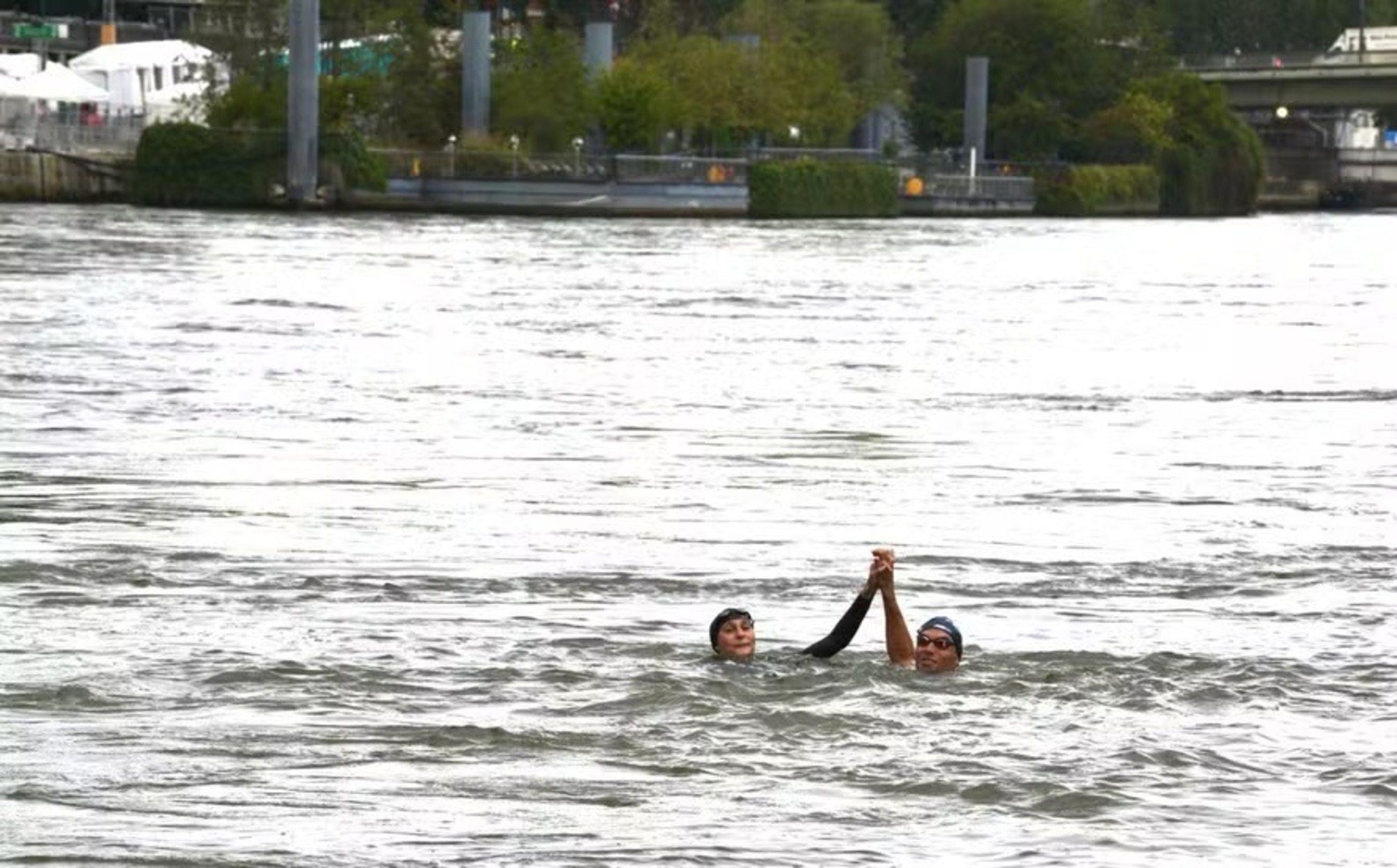 A dupla mergulhou por alguns minutos na altura da Ponte dos Inválidos, a 300 metros da Ponte Alexandre III, onde será a largada das provas de triatlo, águas abertas e paratriatlo nos Jogos. A Paralimpíada será disputada depois da Olimpíada e começará em 28 de agosto.