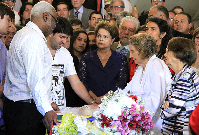 Quando Dilma sentou-se ao lado da viúva, Zélia Suassuna, o público presente puxou a canção carnavalesca usada nas campanhas de Campos. Foi então que o presidenciável veio à frente e ficou próximo ao caixão.