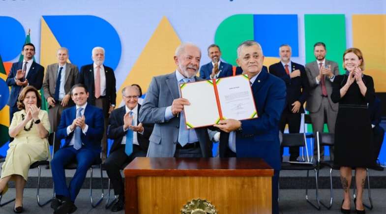 O presidente da República, Luiz Inácio Lula da Silva, deu posse ao novo ministro da Secretaria de Relações Institucionais (SRI), José Guimarães, em cerimônia realizada no Palácio do Planalto nesta terça-feira, 14 de abril. O evento reuniu autoridades dos Três Poderes e marcou a transição na pasta responsável pela articulação política do Governo do Brasil.
