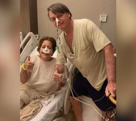A primeira-dama Michele Bolsonaro publicou uma foto do presidente Jair Bolsonaro ao lado de uma paciente no hospital Vila Nova Star, na zona sul de São Paulo.