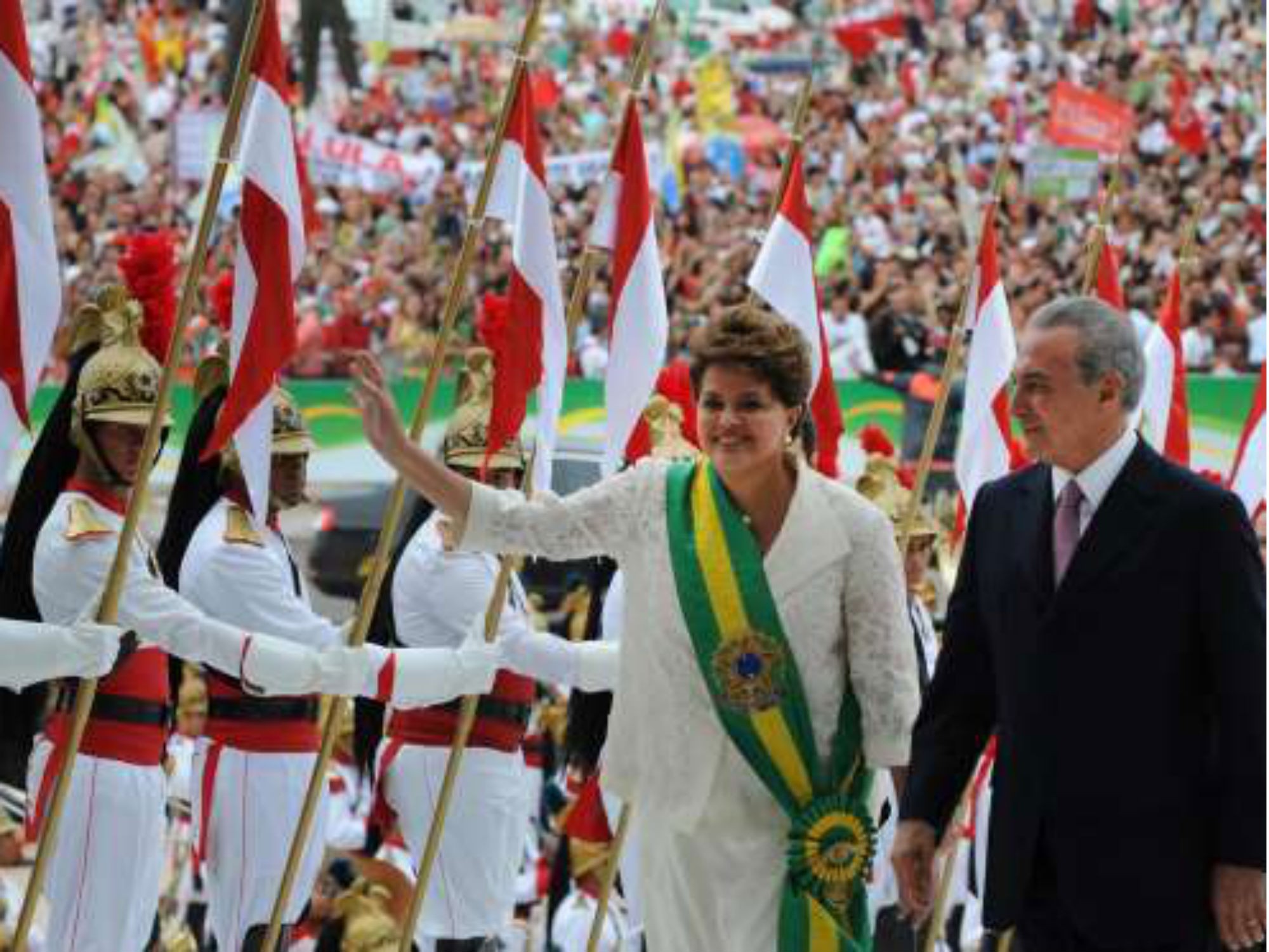 Em 1º de janeiro de 2011, Dilma toma posse como presidente e se torna a primeira mulher a ocupar o mais alto cargo executivo no Brasil.