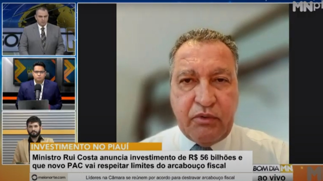 O ministro-chefe da Casa Civil do governo Lula (PT), Rui Costa, anunciou que o novo Programa de Aceleração do Crescimento (PAC), que terá investimento de R$ 1,7 trilhão para todo o país, tem a expectativa de gerar cerca de 3 milhões de empregos diretos e indiretos. Durante uma entrevista à Rede Meio Norte e à TV Jornal Meio Norte, realizada nesta quarta-feira (30), o ministro também confirmou que o Piauí receberá R$ 56 bilhões em investimentos por meio do programa.