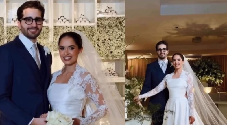 O médico Bruno Carvalho, filho do ex-prefeito de Teresina Firmino Filho e da vereadora Lucy Soares, oficializou sua união com a advogada Isabella Fortes Raposo em uma celebração religiosa realizada na noite de sábado (07).