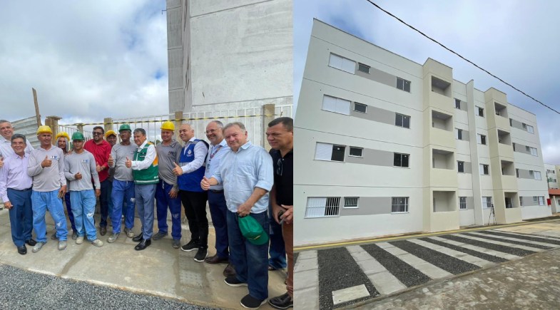 Durante a agenda, os ministros acompanharam de perto o andamento das obras do Residencial Santa Teresa, que conta com 176 apartamentos e investimento de R$ 29,9 milhões.