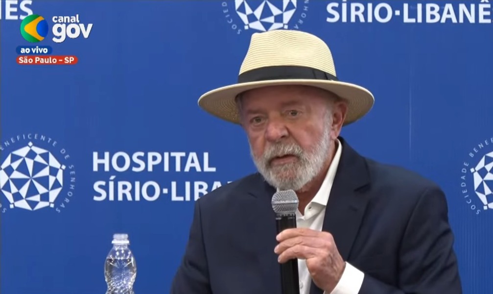 Enquanto a equipe médica informava à imprensa sobre sua alta, Lula apareceu de surpresa no auditório do hospital, usando um chapéu para cobrir a cabeça, e falou com jornalistas.