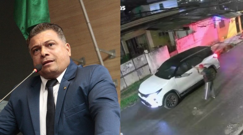 As imagens mostram o veículo estacionado por volta de 0h56, quando dois homens em uma moto se aproximam. O passageiro desce armado e avança em direção ao carro, enquanto o condutor da moto segue alguns metros à frente, aguardando a ação.