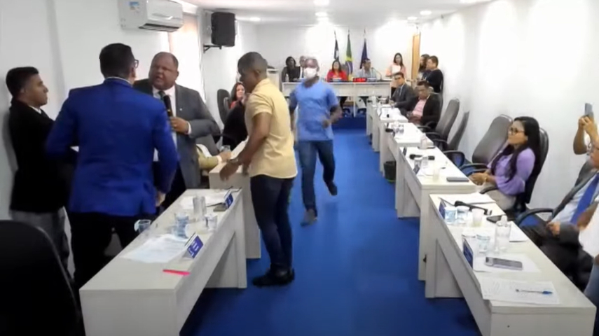 Vereadores Gabriel Bandarra (Podemos) e Ronaldo Washington Lopes (PP) se envolveram em uma briga durante sessão na Câmara Municipal de Lauro de Freitas (BA), na terça-feira, 27. O conflito começou após Bandarra criticar a presidente da Casa, acusando-a de favorecer a prefeita. Lopes rebateu, defendendo a colega e criticando a atitude desrespeitosa de Bandarra. A discussão escalou para agressão física antes que a transmissão fosse interrompida e a segurança interviesse.