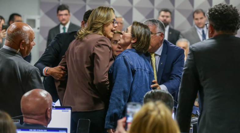 A confusão começou após a aprovação de pedidos de prisão preventiva de investigados na operação Sem Desconto. Ao comemorar o resultado, Coronel Fernanda disse em voz alta: “Aprovamos, aprovamos”. A senadora Leila, que estava ao lado, retrucou afirmando que a base governista também havia votado a favor. O tom da discussão aumentou até a intervenção de colegas para acalmar a situação.
