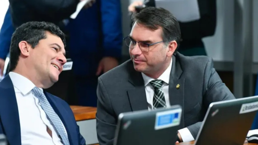 Flávio Bolsonaro (PL-RJ) e Sergio Moro (União Brasil-PR) estavam sentados na mesma fileira do plenário, separados por uma cadeira. O filho mais velho do ex-presidente Jair Bolsonaro (PL) permaneceu praticamente impassível, fixando o olhar em um dos painéis do plenário. Por outro lado, Moro trocou breves cochichos com o colega ao lado e esboçou um sorriso discreto.