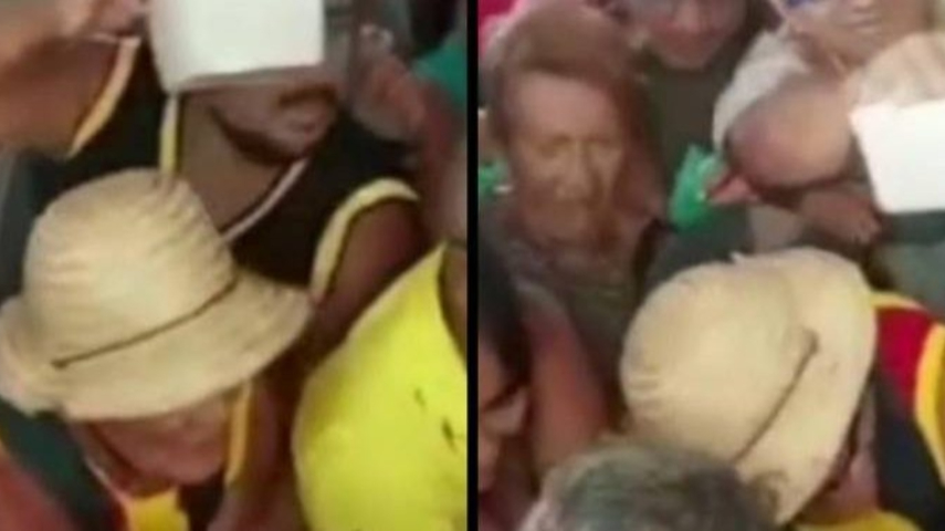 A destacada disputa pelos pedaços, com alguns indivíduos chegando a utilizar recipientes para assegurar a sua porção, chama a atenção.