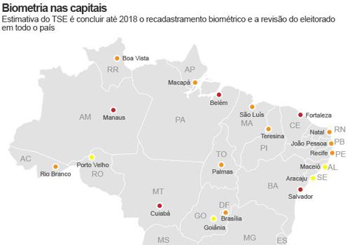 A identificação do eleitor por meio da biometria nas eleições de outubro deste ano será realizada em quase 800 municípios do país, entre os quais 15 capitais. Segundo o Tribunal Superior Eleitoral (TSE), o resultado da votação com biometria nas capitais servirá como "experiência" para a implantação da medida nos maiores colégios eleitorais do país, as cidades de São Paulo e do Rio de Janeiro.