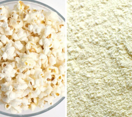 4. Sua pipoca deve estar, nesse momento, caramelizada. Coloque o leite ninho em um recipiente grande, junte a pipoca e espalhe bem para envolver todo o milho estourado.