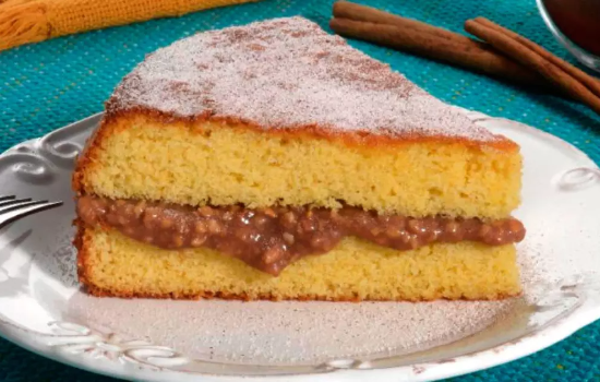 Aprenda a preparar um bolo de fubá fofinho com recheio de pé de moleque