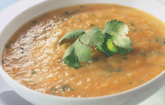 Sopa de cenoura e feijão-manteiga