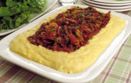 - Transfira para uma travessa, despeje a carne reservada por cima e sirva acompanhado de salada de folhas.