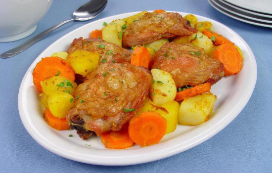 Sobrecoxa assada com legumes | Foto: Guia da Cozinha