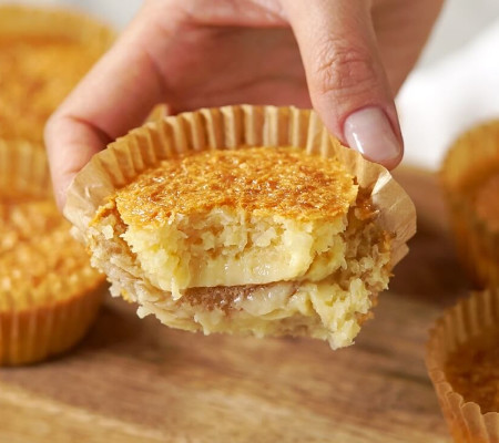 Fácil e rápida, essa queijadinha é do tipo que dá vontade de comer de colher direto do refratário. O salgadinho do queijo equilibra a doçura do leite condensado. A casquinha fica crocante, e o interior bem cremoso.