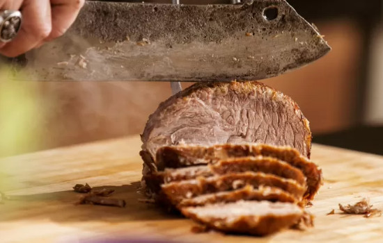 A carne deve passar de seis a oito horas na grelha alta, longe das labaredas da brasa. De hora em hora, o espeto precisa ser virado de lado. Quando estiver no ponto, escorra o caldo de tempero numa tigela e sele a superfície da carne bem pertinho do fogo.
