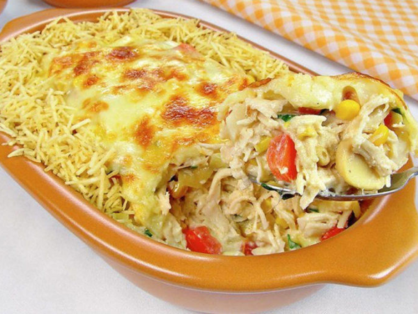 Fricassê gratinado com frango