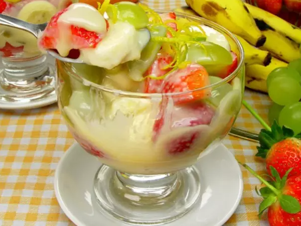 - Despeje sobre as frutas e sirva polvilhado com as raspas de laranja.