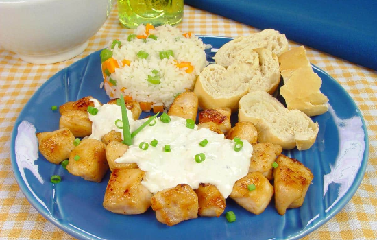 Cubos de frango ao gorgonzola
