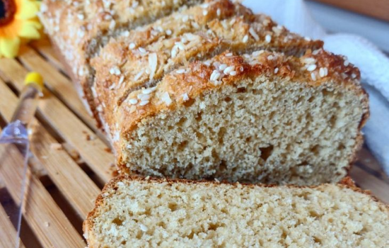 - Bata até ficar homogêneo e despeje a massa em forma de pão untada e polvilhada com farinha.