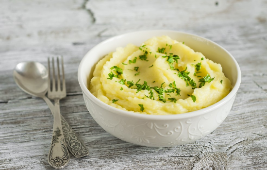 4. Acrescente o leite quente e amasse tudo com um amassador manual. Reserve.