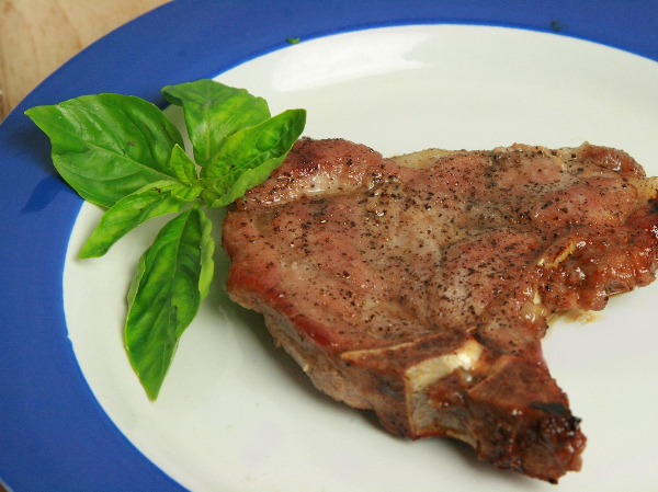 - Suas incríveis e suculentas bistecas suínas estão prontas! Bom apetite!