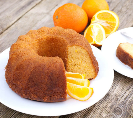 3. Depois de assado, regue o bolo com calda de laranja quente.