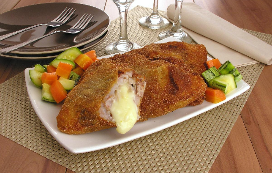 - Passe pela farinha e pelos ovos batidos e empane na farinha de rosca.