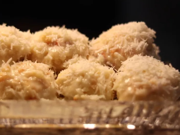 3. Em uma forma untada, coloque as bolinhas modeladas;