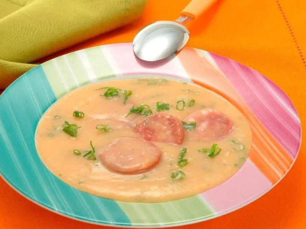 Sopa de mandioca com calabresa