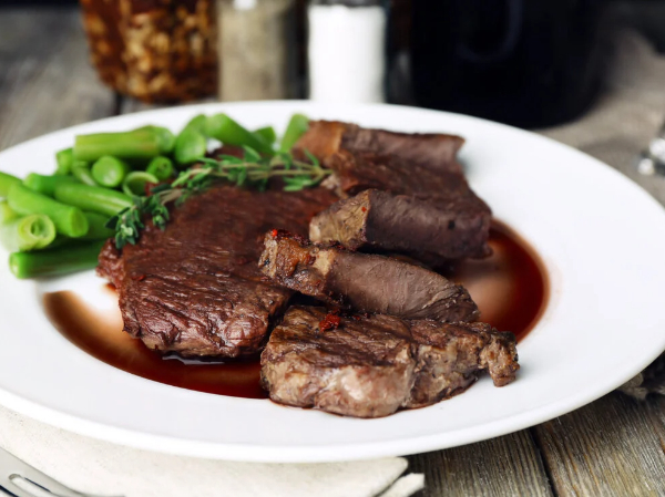 - Coloque a maminha na panela com a gordura voltada para baixo.